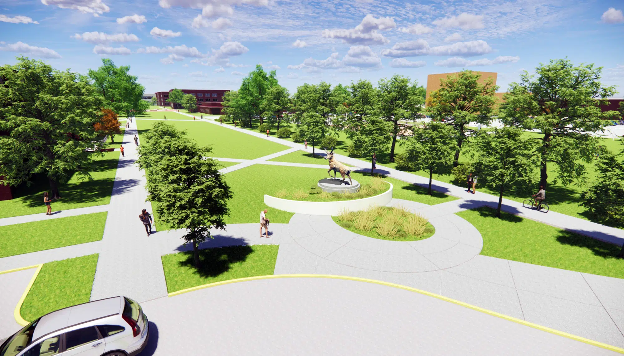 While the land is prime development property that could fill several future university needs, immediate plans are to add parking and new lighting, create greenspace and install a large antelope sculpture.