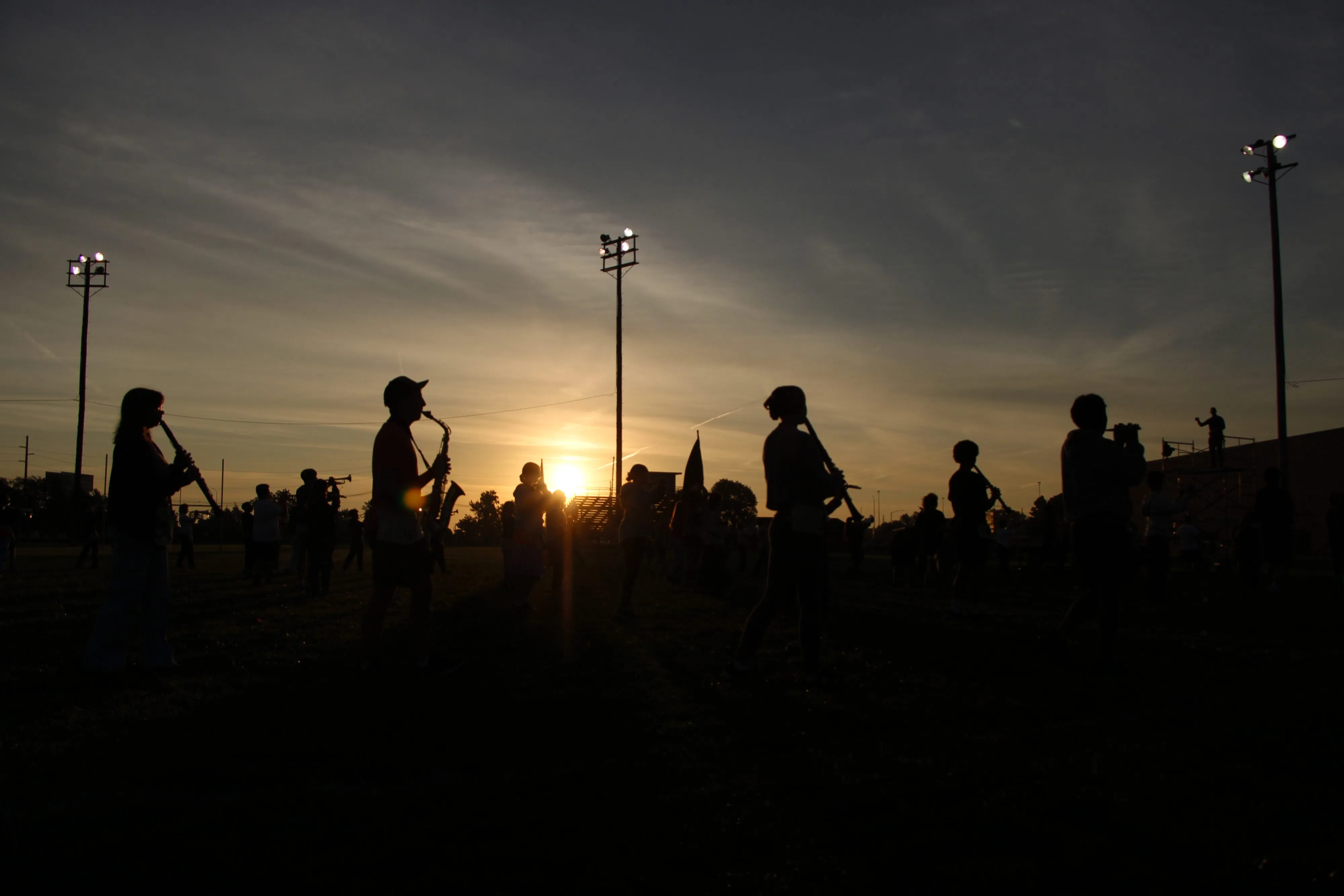 On Thursday, Sept. 11, the members of the Hastings band were out on the practice field north of Hastings High School prior to sunrise working on their drill for a movement before doing run through of the show.